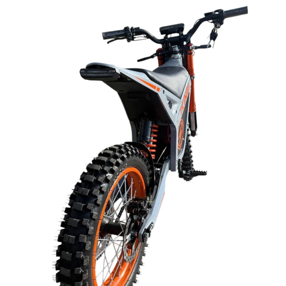 Электропитбайк IKINGI S7 Pro Max Ultra — мощный внедорожный монстр для экстремальных поездок и ежедневного использования. С двигателем 3000 Вт, задним приводом и скоростью до 88 км/ч он легко покоряет горки, грунт и город под нагрузкой до 180 кг. Аккумулятор Li-ion 60V 30 Ач обеспечивает до 80 км пробега (реально 40–70 км в зависимости от режима, веса и рельефа), зарядка за 3–4 часа. Внедорожные шины 19R/16R с двойными амортизаторами смягчают удары на неровностях.