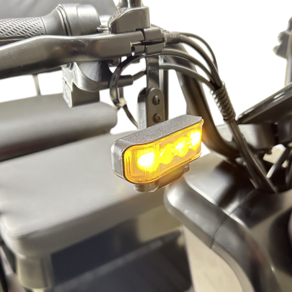 В стандартной комплектации есть зеркала, корзина, фара, стоп-сигналы и поворотники. LCD-дисплей показывает заряд, пробег и скорость, что делает поездки удобнее.