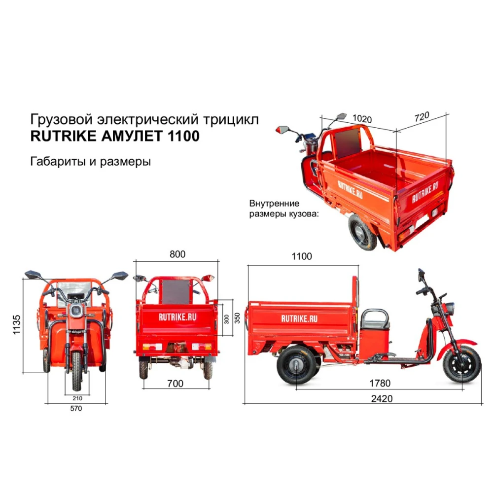 Грузовой электротрицикл Rutrike Амулет 1100 60V650W в синем цвете представляет собой надежное и мощное средство для перевозки грузов. Он оснащен мощным мотором мощностью 650 Ватт, который обеспечивает достаточную скорость и уверенное передвижение по дорогам и тропам.