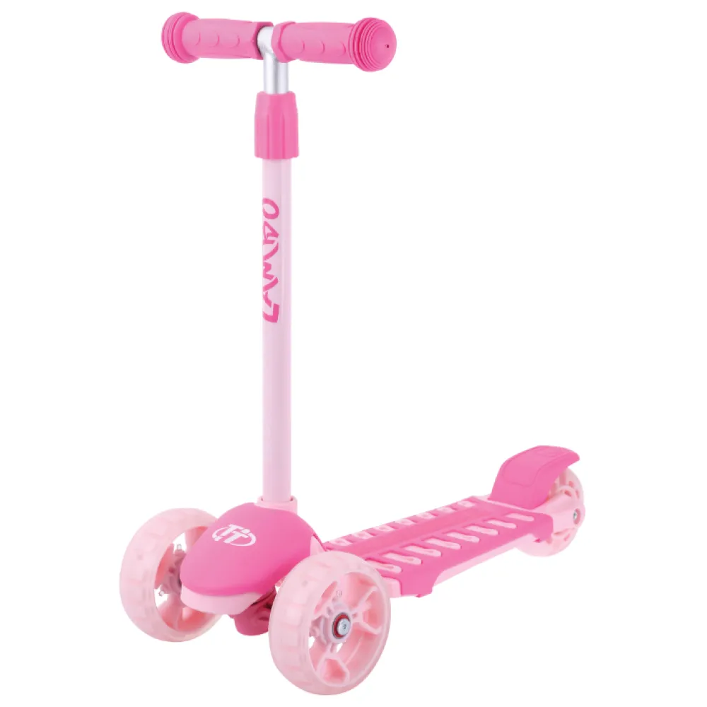 Самокат весом 2,1 кг рассчитан на максимальный вес в 35 кг. Изготовлен из безопасного прочного пластика, не имеет острых углов. Эргономичные компактные габариты не требуют выделения специального места в доме. Высота телескопического руля комфортна для ребенка, фиксируется в трех положениях в пределах 53-75 см.
