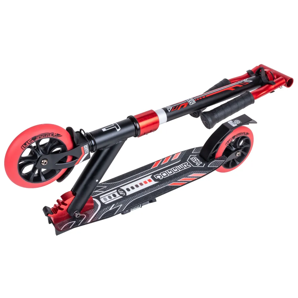 Самокат  Tech Team JOGGER 145 в черно-красном цвете – шикарный вариант техники по приемлемой стоимости. Купить хит сезона 2022 выгодно предлагает наш интернет-магазин. Самокат предназначен для пользователей от 5-летнего возраста и старше. Имеет массу 3,75 кг, грузоподъемность – до 50 кг. Модель – трансформирующаяся, практичная в транспортировке. На сегодняшний день считается лучшим вариантом городской техники.